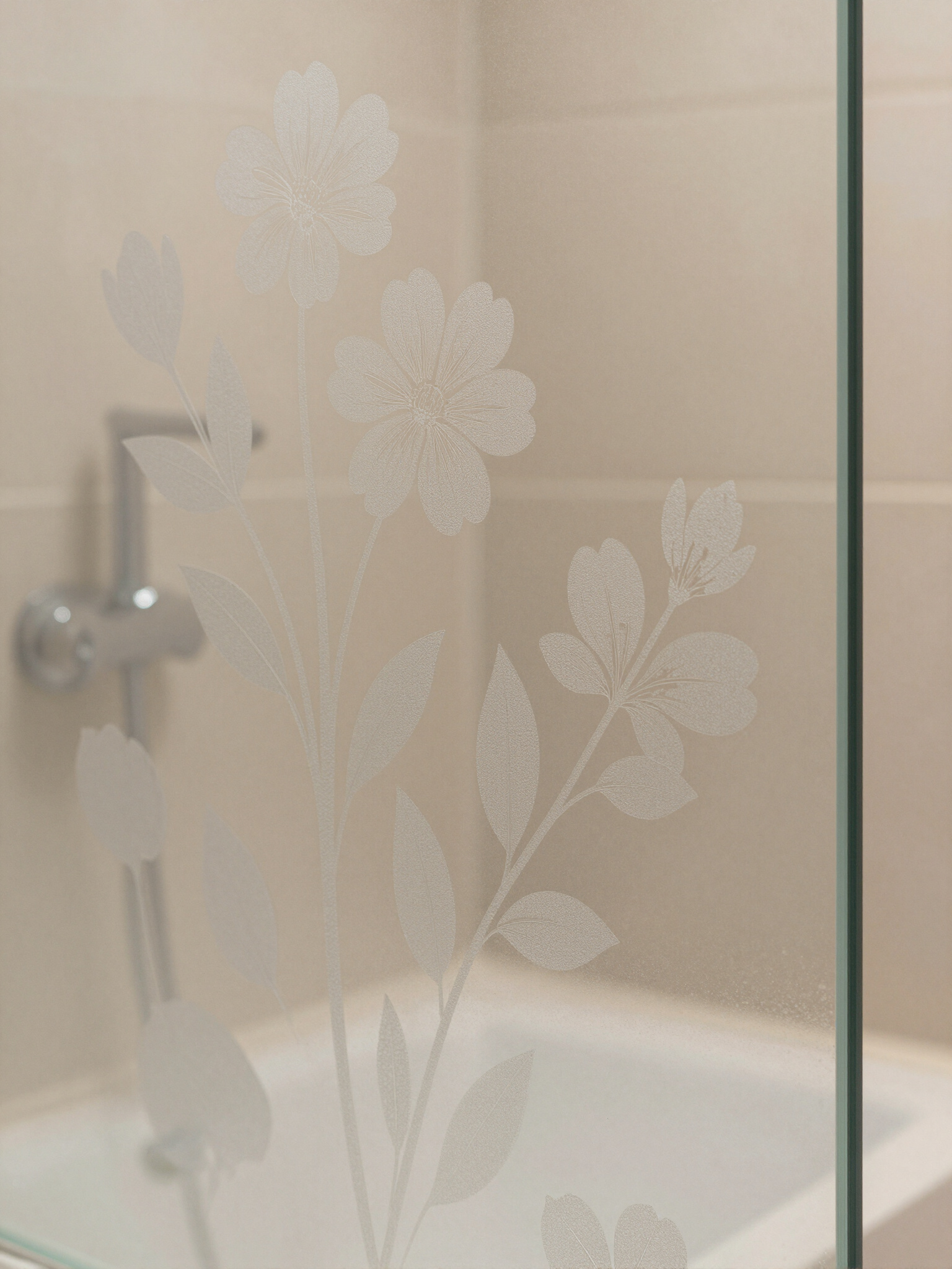 Surface etching techniques that create varying depths and textures, transforming architectural panels into private, frosted art pieces.